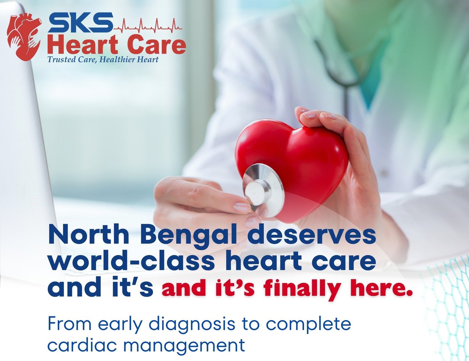 At SKS Heart Care, we believe heart health is the foundation of a healthy life. As the first dedicated heart care clinic in North Bengal, we provide complete cardiac diagnosis, consultation, and preventive care using advanced facilities and a patient-centered approach.